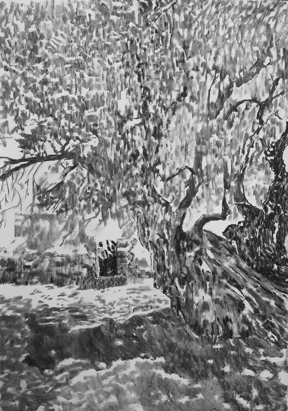 Each 5 x 9’ charcoal drawing will be used as the basis for a RHINO 3D generated file to be carved in bas-relief in Corian with a CDC router. The final piece will be six panels, illuminated from behind. The series was inspired by the paintings of Eduard Vuillard, film stills, and the landscape of Greece.